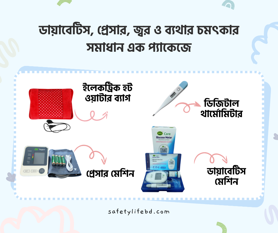 হঠাৎ বড় ধরনের ঝুঁকি এড়াতে ঘরে বসেই চেকআপ করুন ডায়াবেটিস, প্রেসার,জ্বর ও ব্যথা কমাতে হট ওয়াটার ব্যাগ